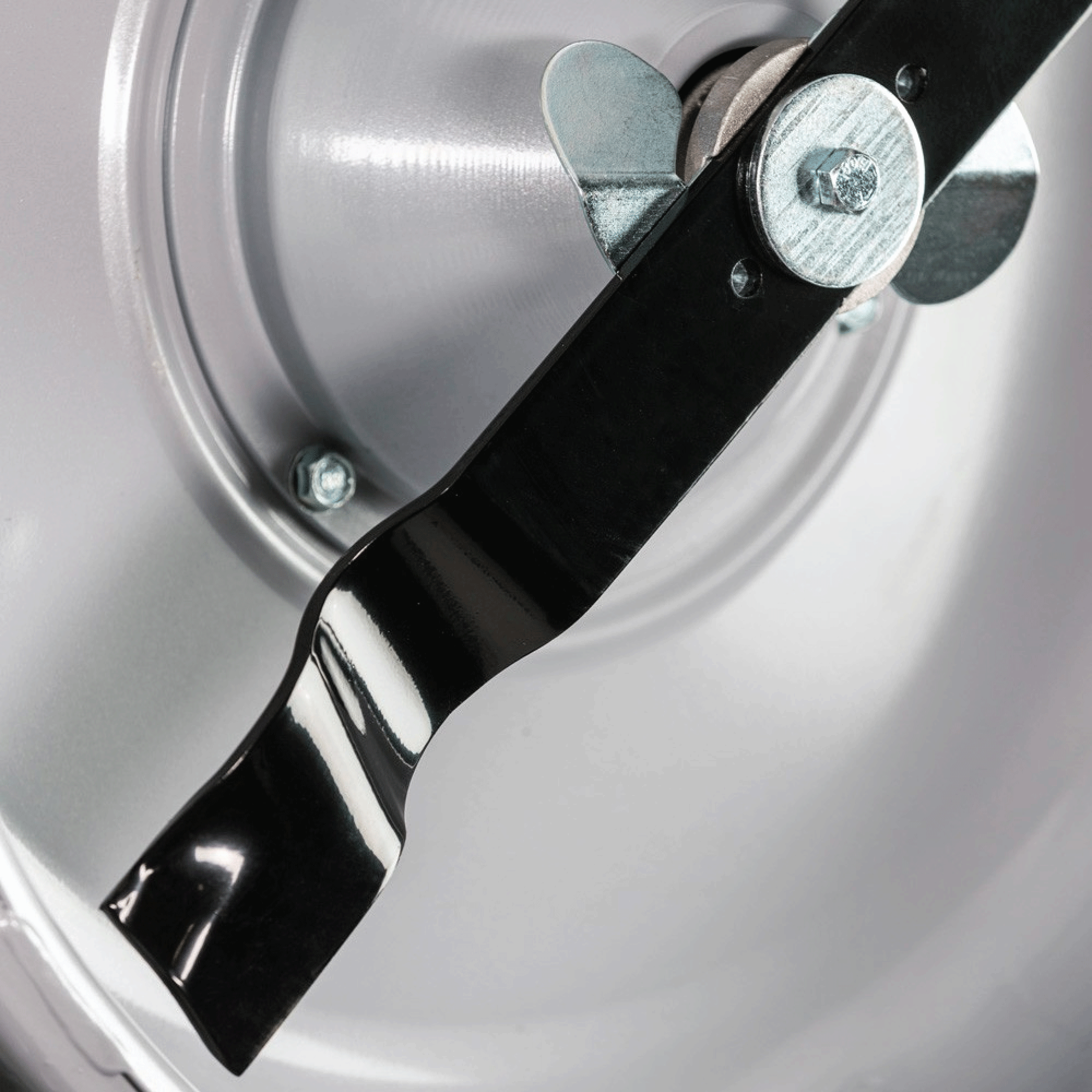 Opremljena je profesionalnim 2-BRZINSKIM pogonom u uljnoj kupki, unutar aluminijskog kućišta, koji omogućuje prilagodbu brzine ovisno o stanju travnjaka – za maksimalnu učinkovitost i udobnost u radu.