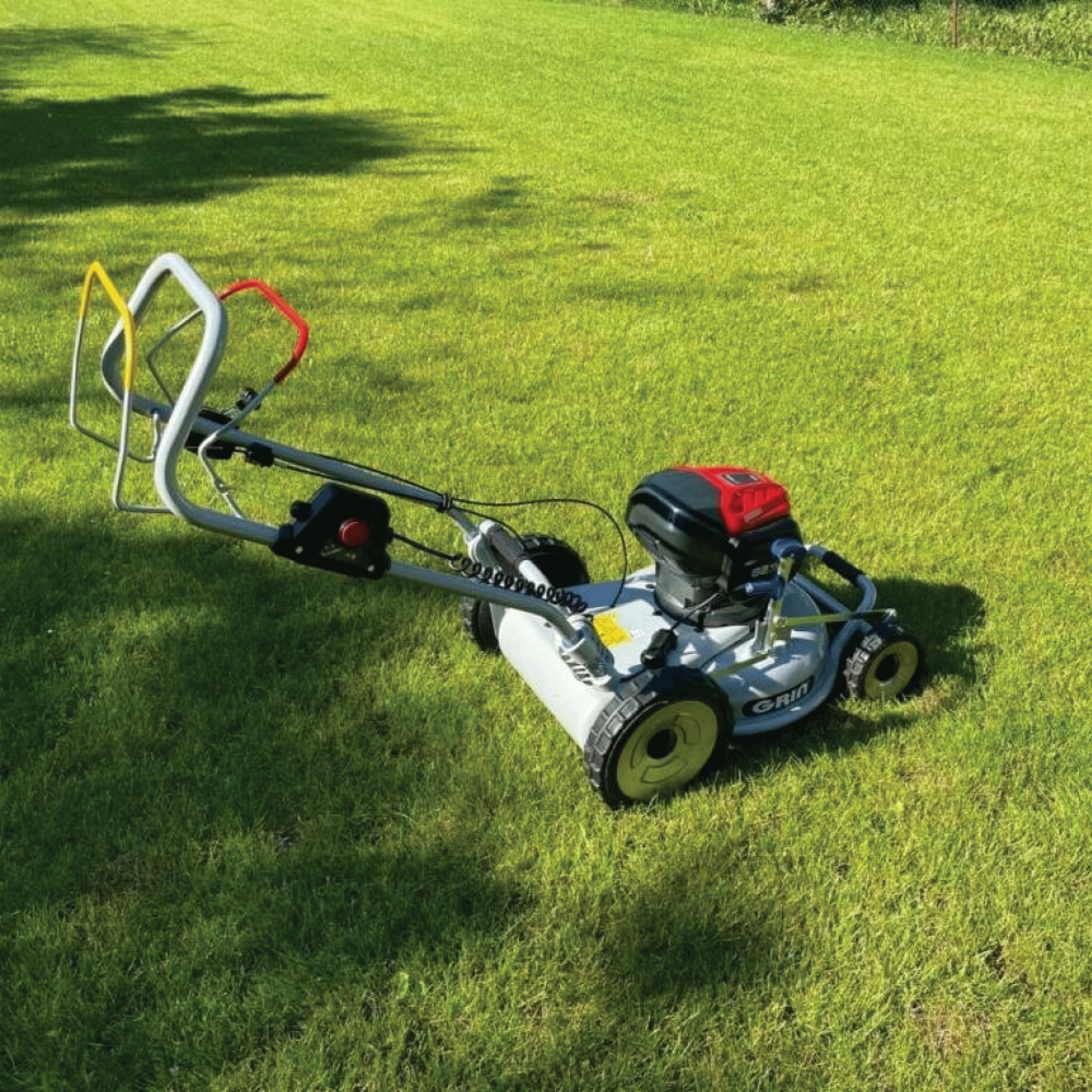 Temeljen na čvrstoj i provjerenoj Grin šasiji, ovaj model dolazi standardno s zaštitnim konusom motora. Srce ove kosilice je električni motor snage 1,5 kW, koji osigurava impresivne performanse čak i u visokoj travi i zahtjevnim uvjetima – usporedive s kosilicama na motor s unutarnjim izgaranjem.