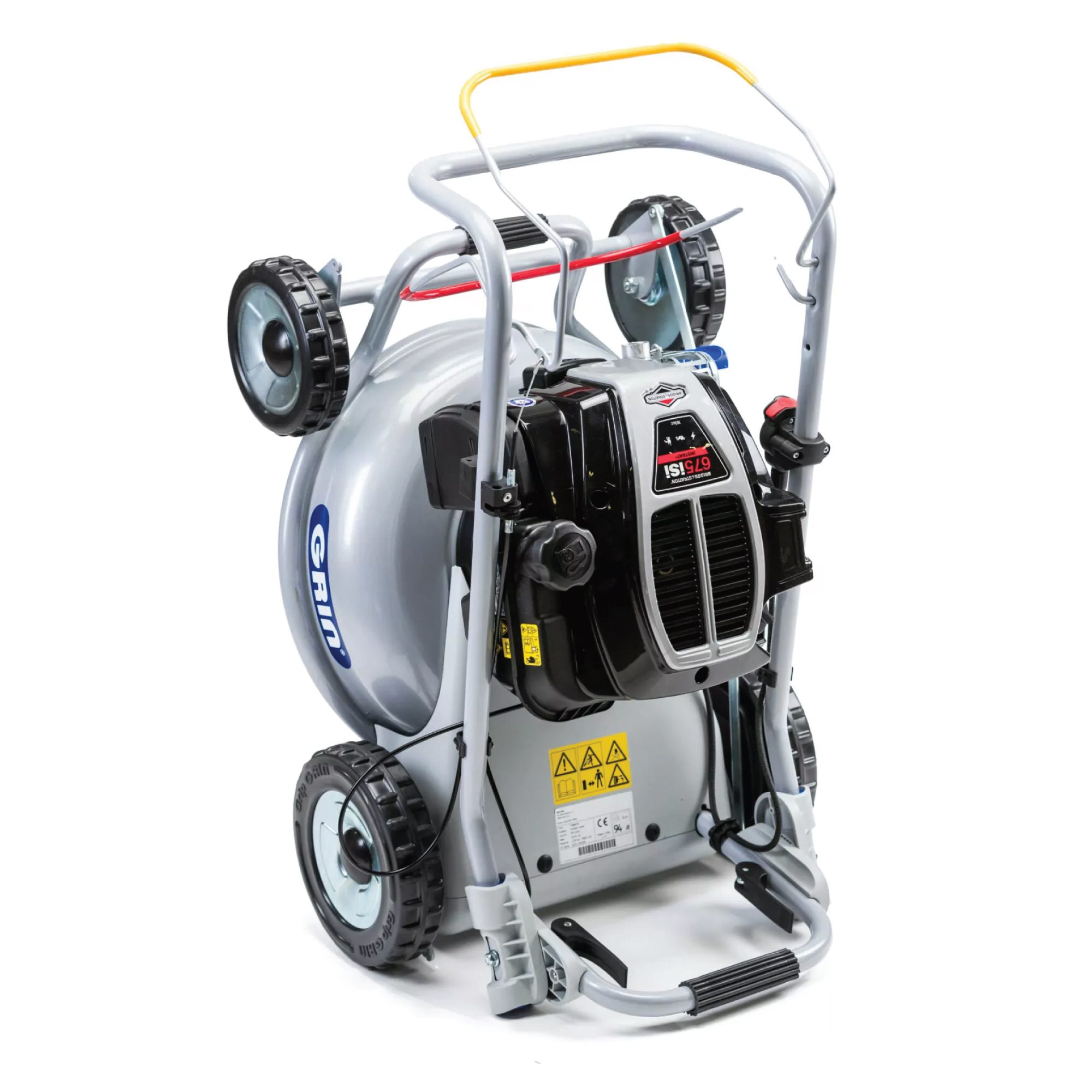 • Mow N’Stow sustav omogućuje vertikalno skladištenje kosilice čak i kad je spremnik goriva pun—a time se štedi prostor i olakšava čišćenje također jedna posebna funkcija koju imaju samo GRIN kosilice.