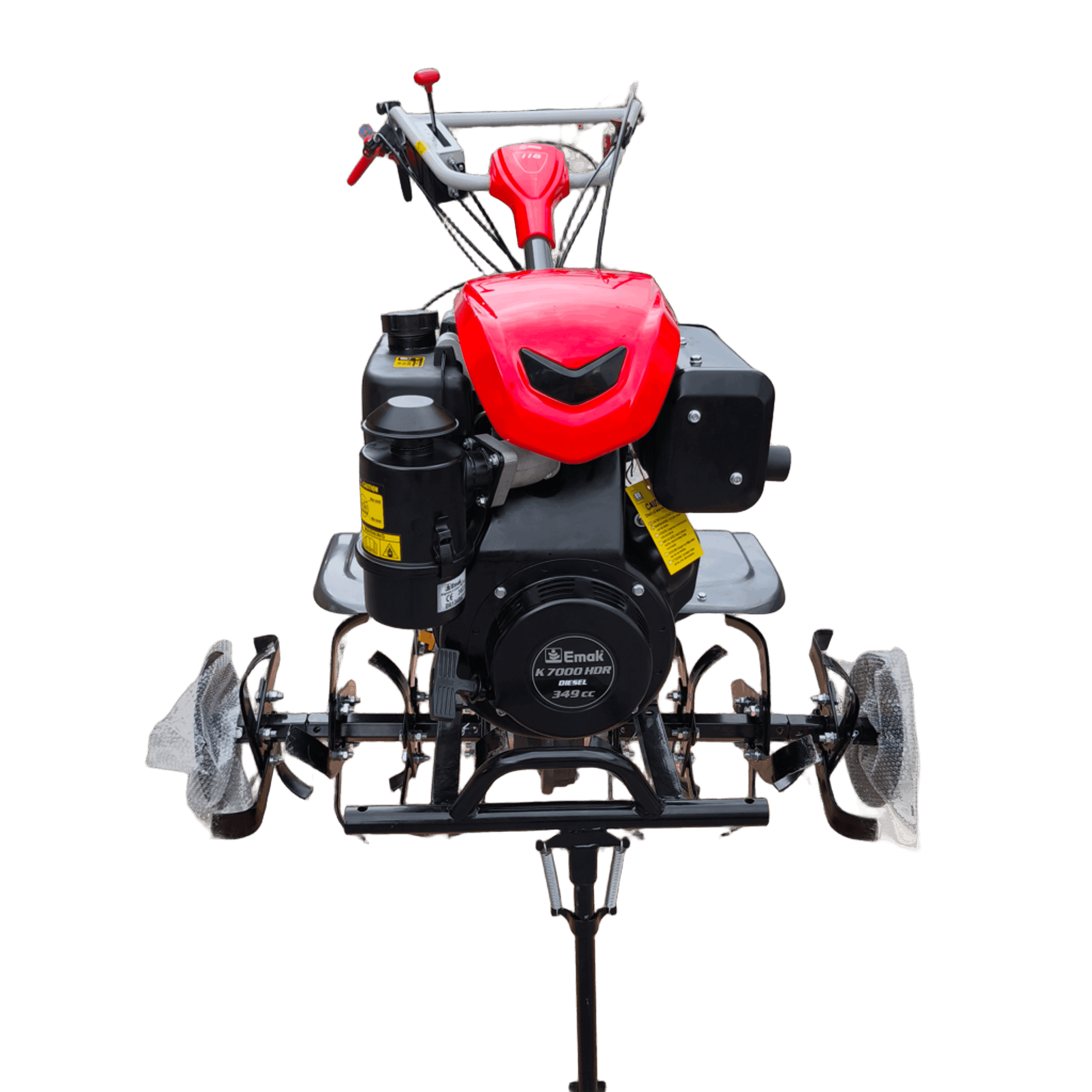 Na pogonsku osovinu povezanu s motorom zapremine 252 ili 349(diesel)CC i snage 7Ks montirane su motike za kopanje radne širine od 100cm te se mogu reducirati na širinu od 82ili 60 cm po izboru.